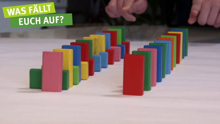 "Was fällt Euch auf?" - unterschiedlich angeordnete Kettenreaktion mit Bauklötzen