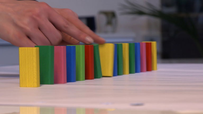"In beide Richtungen" – Kettenreaktion mit Bauklötzen